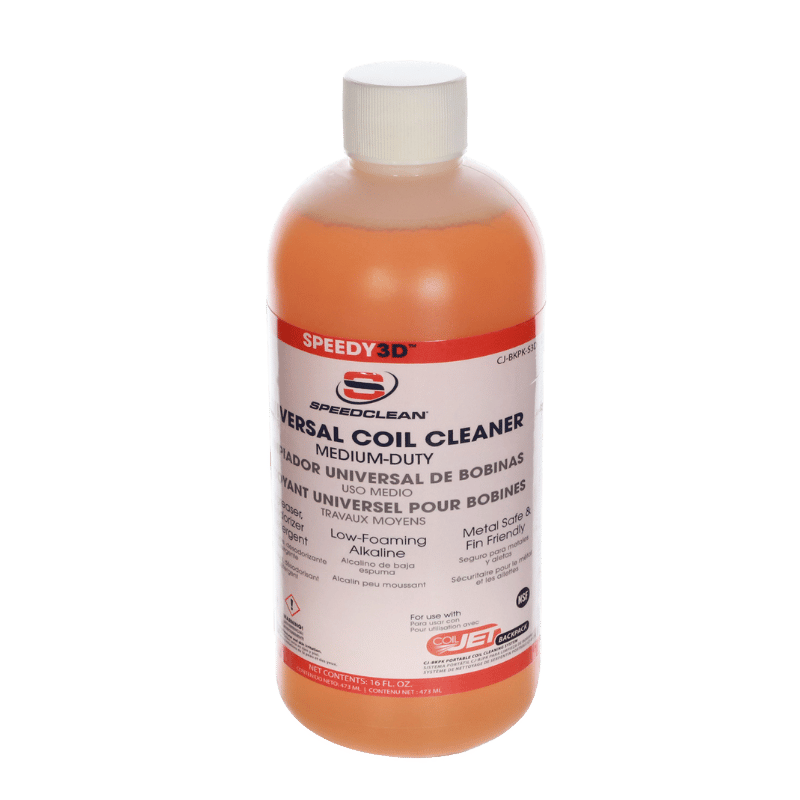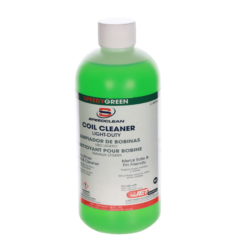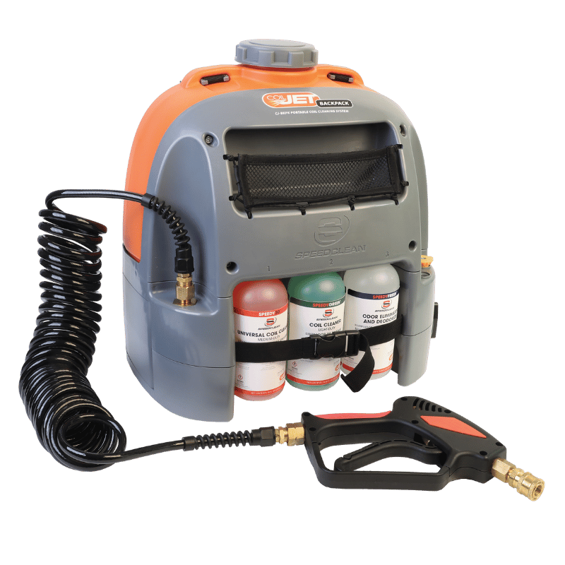 SpeedClean® 3-in-1 Coil Cleaner is a convenient 3-pack containing a premixed super concentrated coil cleaner, degreaser, and deodorizer that are specially formulated for use with the portable CoilJet® Backpack (CJ-BKPK). SpeedClean® C-in-1 (CJ-BKPK-3N1) provides the convenience of having all the right chemicals on hand to effectively clean and service a mini-split unit. The kit includes Speedy® 3D universal coil cleaner, Speedy® Green no-rinse cleaner and deodorizer, and Speedy® Fresh odor eliminator.